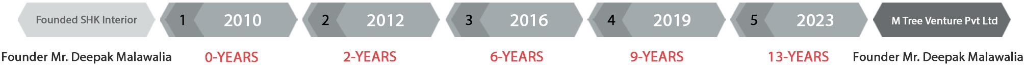 M Tree Ventures formerly known as SHK INTERIOR was started by Mr. Deepak Malawalia in 2010.